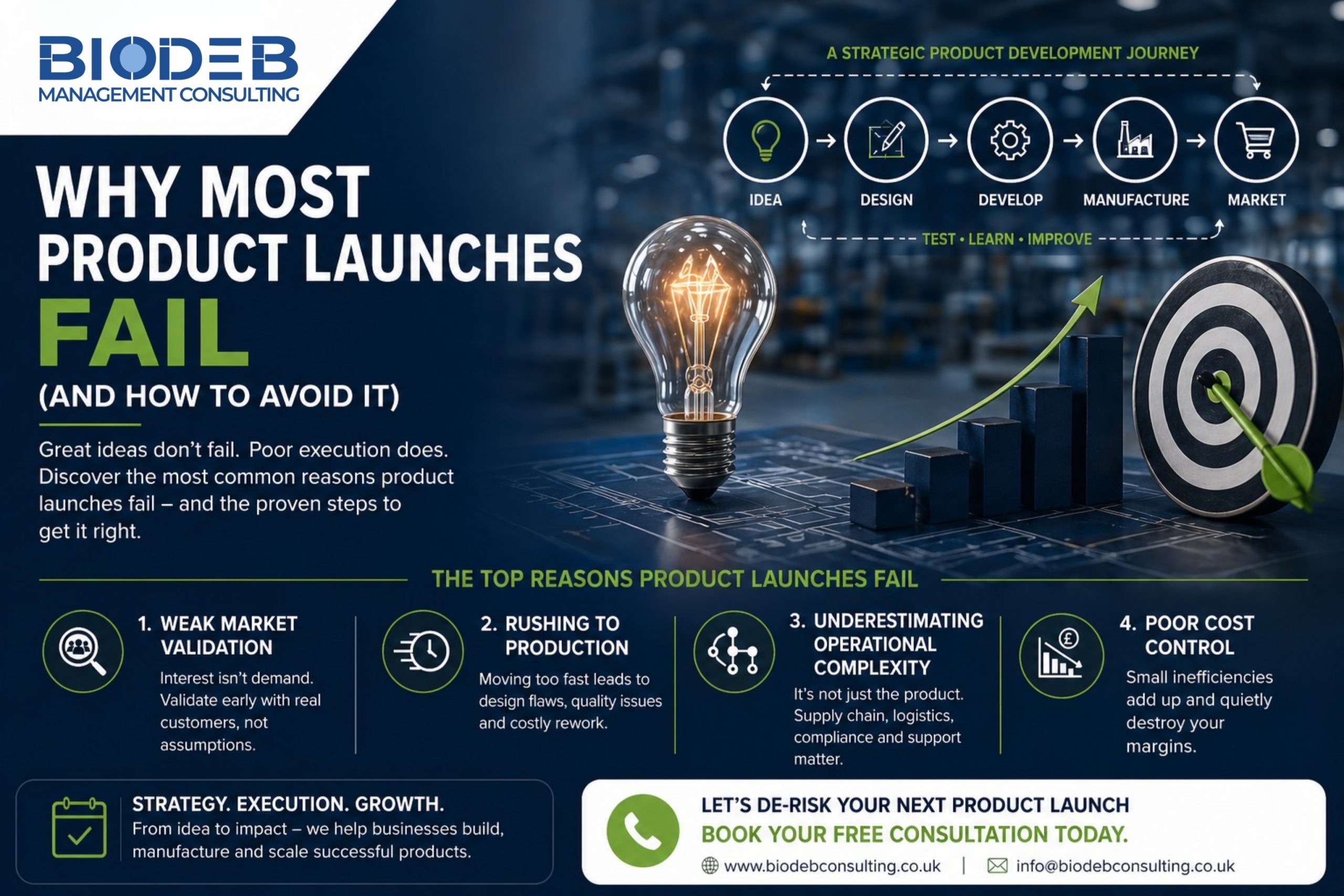 At Biodeb Consulting, we work with businesses across the UK and international markets to reduce product development risk, optimise manufacturing processes, and support scalable growth strategies.
